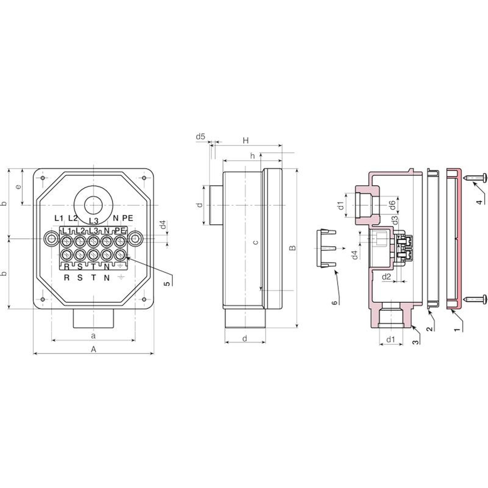 | Código | Art. | A | B | H | h | d | a | b | c | e | d1 | d2 | d3 | d4 | d5 | d6 | Peso (g) |
