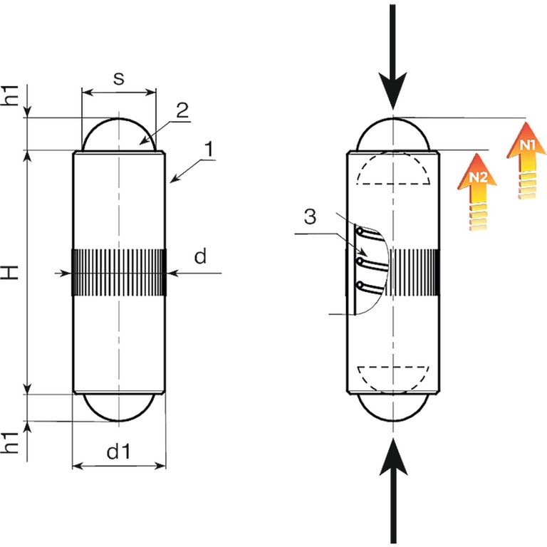 Código | art. | s | H (+0 -0.2) | h1 | d (+0.05 -0) | N1 (N) | N2 (N) | d1 | Peso (g) |