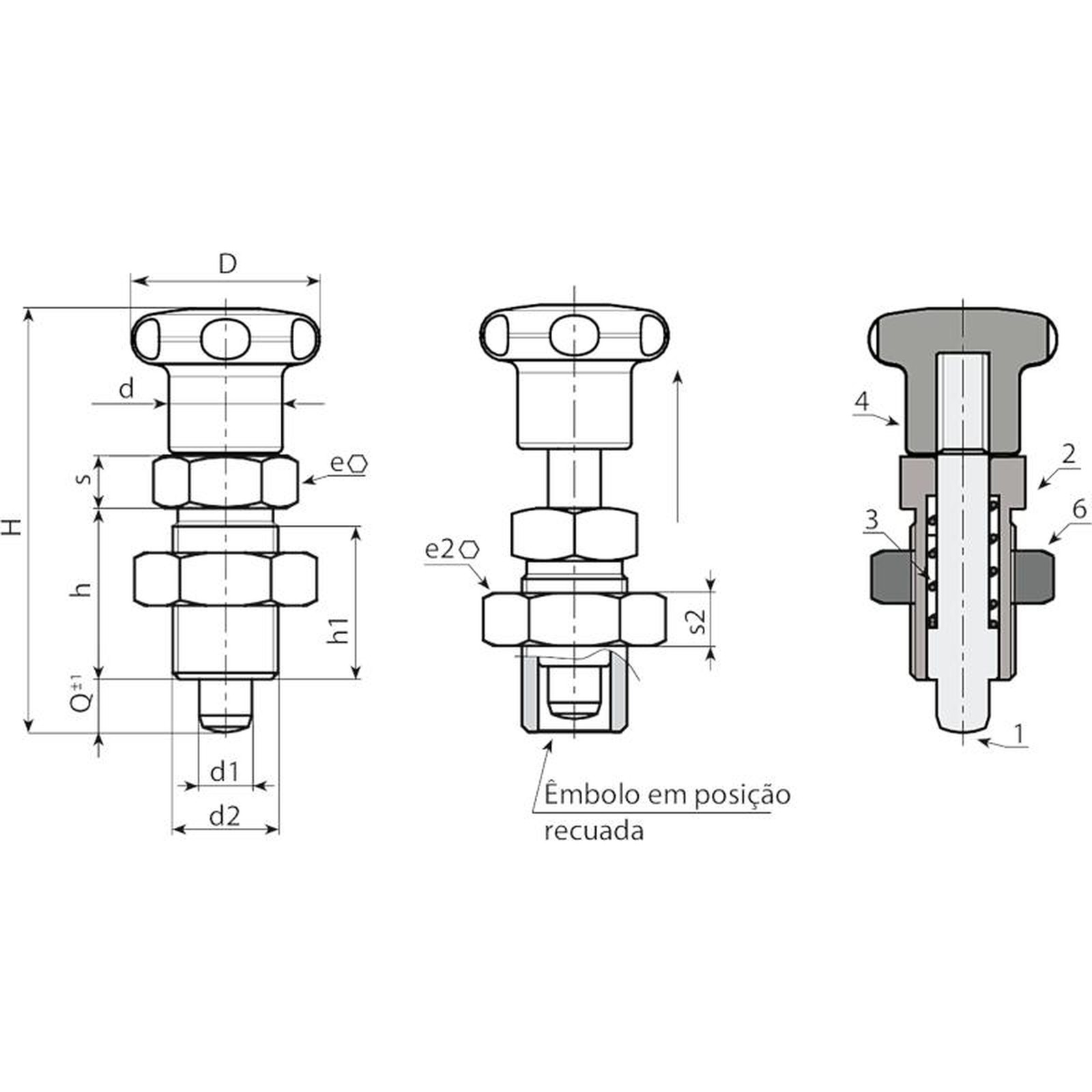 (1) Perno do êmbolo de indexação em aço inoxidável (Aisi 303).