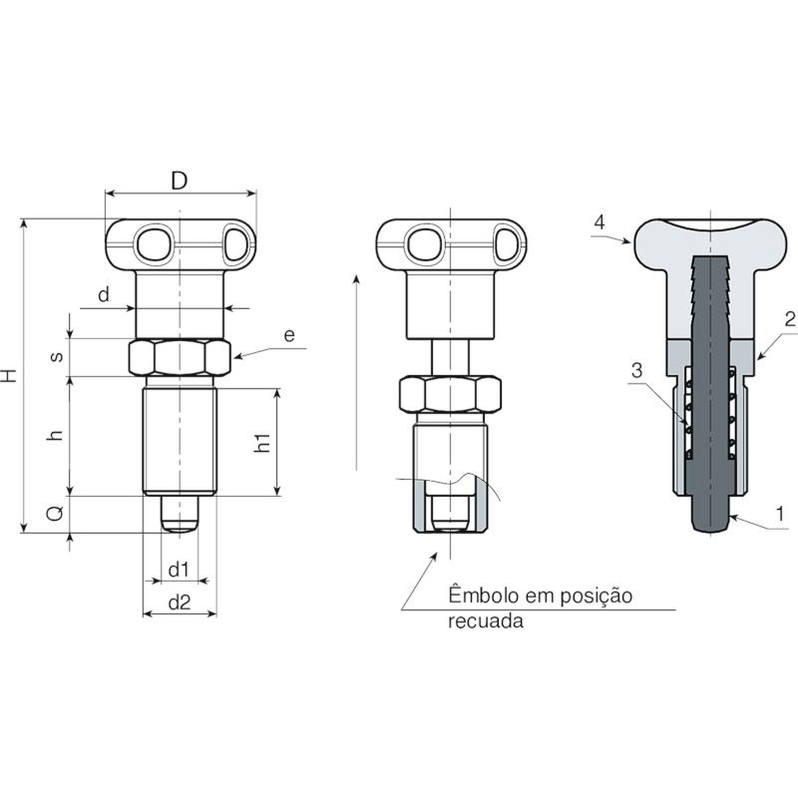 Êmbolos de indexação roscados de passo fino - com manípulo