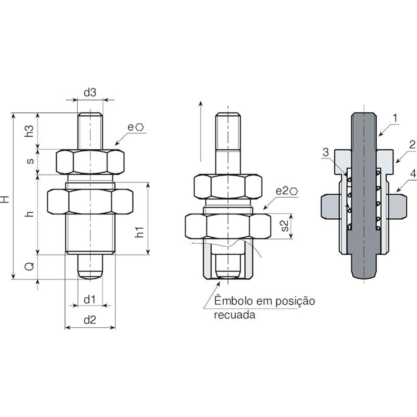 ÊMBOLO DE INDEXAÇÃO ROSCADO EM AÇO COM PORCA DE BLOQUEIO