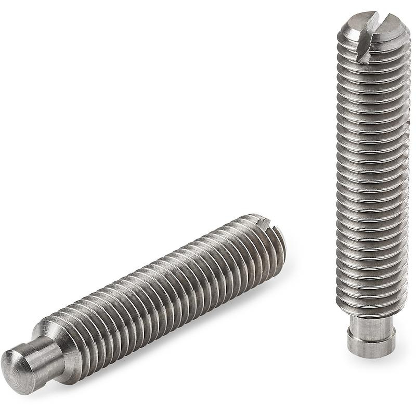 Perno roscado em aço inoxidável (Aisi 303), com fenda para chave de parafusos e ponteira.