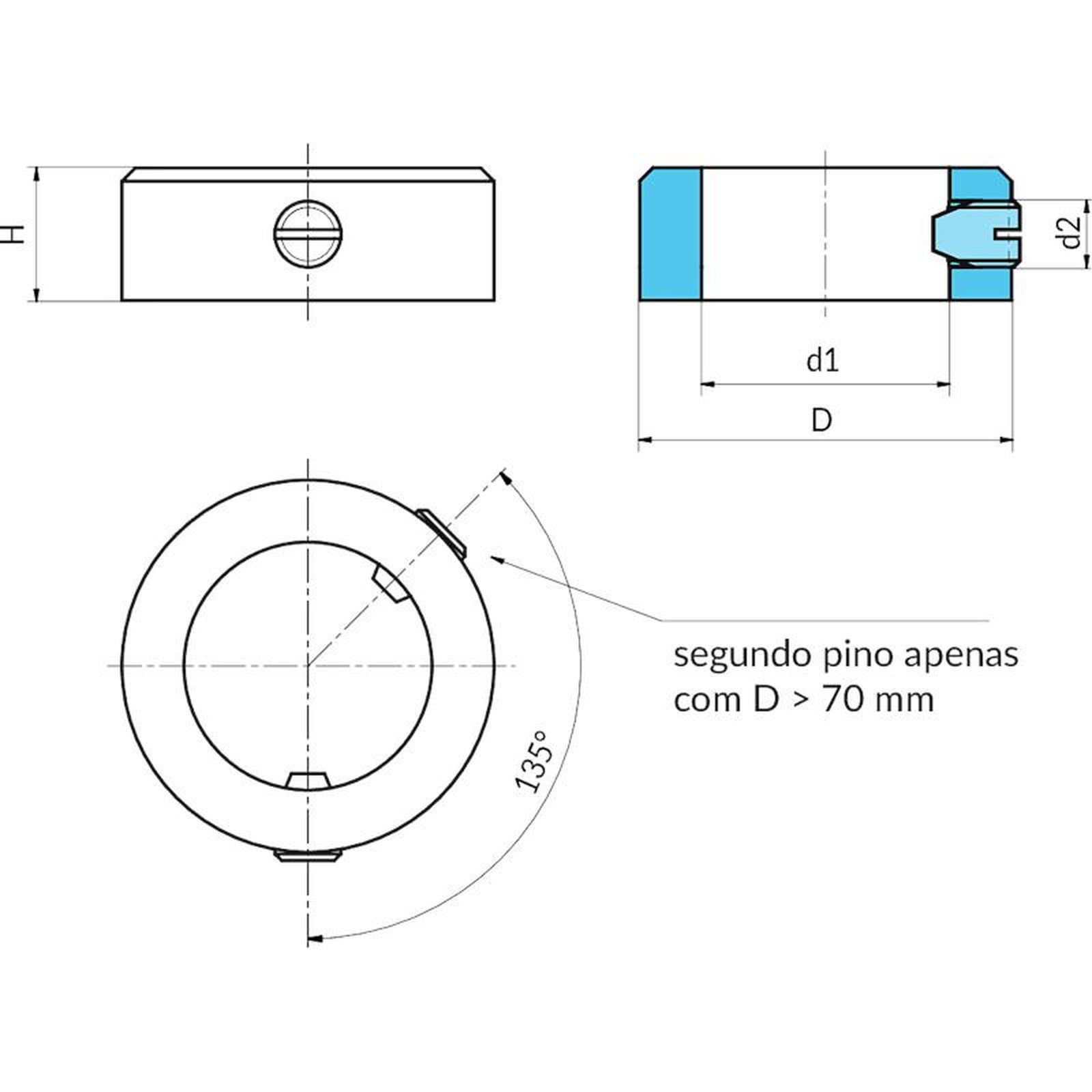 o segundo pino é adicionado a partir do diâmetro D=>70 mm.