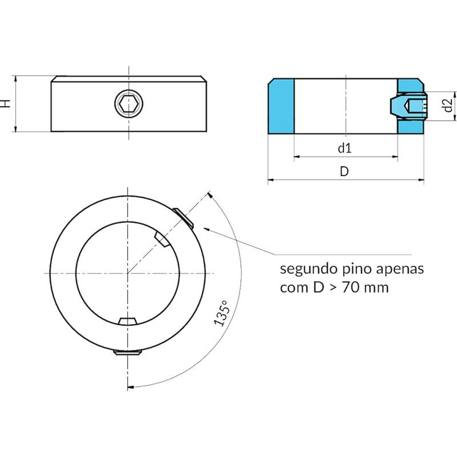 o segundo pino é adicionado a partir do diâmetro D=>70 mm.