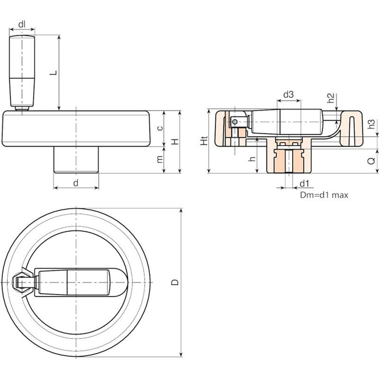 | Код | Арт. | D | H | Ht | h | d | m | c | d3 | h3 | h2 | dl | L | Dm | d1 H10 | Q | Вес (г) |