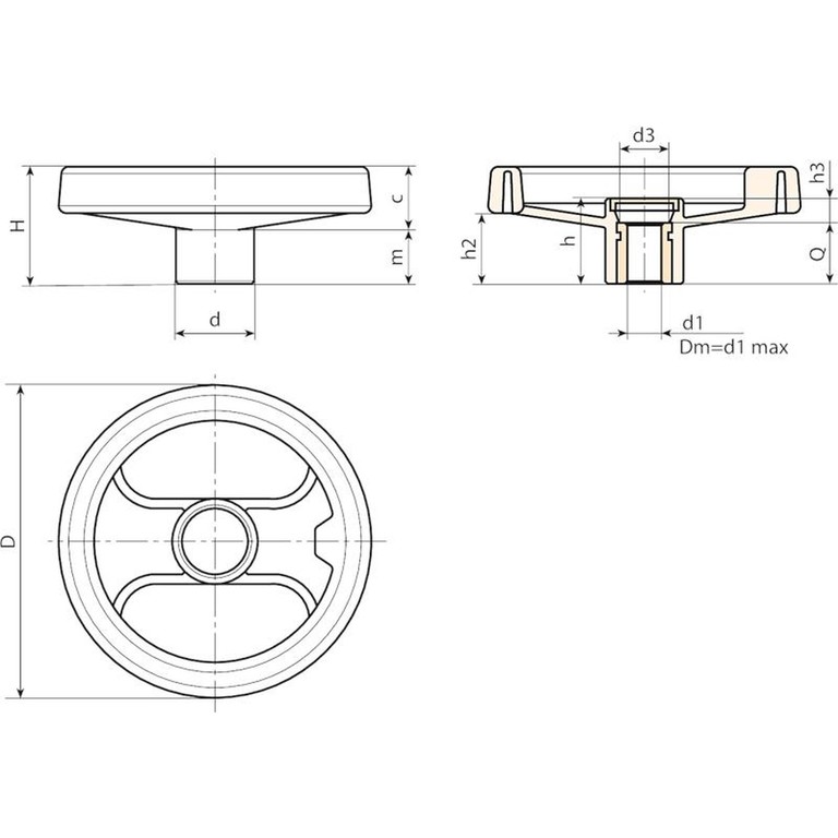 | Код | Арт. | D | H | h | d | m | c | h2 | h3 | d3 | Dm | d1 H10 | Q | Вес (г) |