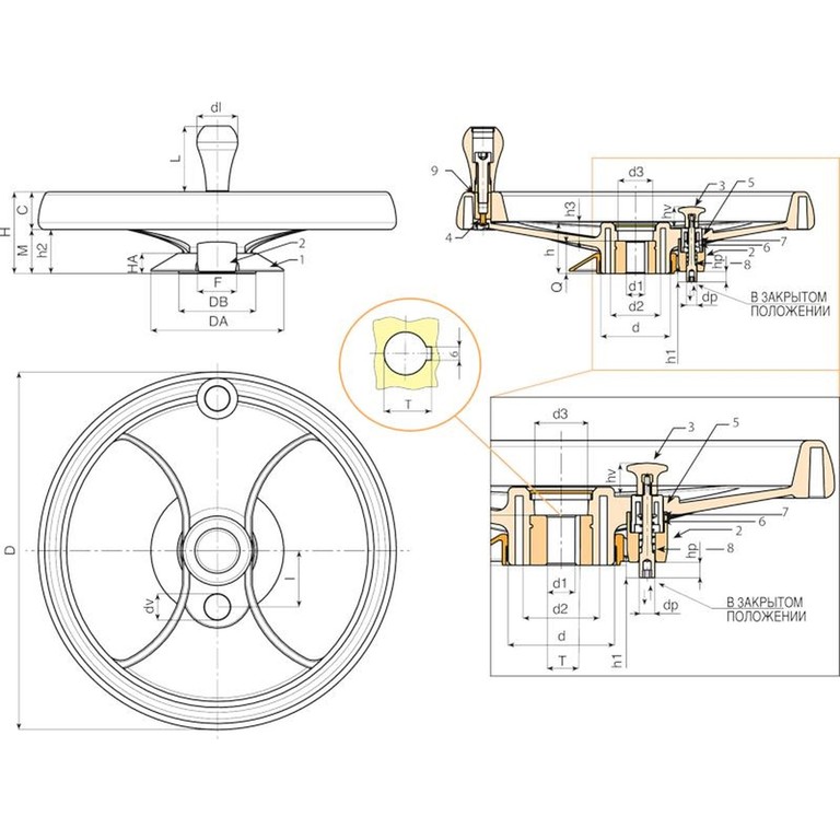 МАХОВИК С ДВУМЯ СПИЦАМИ С ПОВОРОТНОЙ РУКОЯТКОЙ И ЗАПИРАЮЩЕЙ ЗАЩЕЛКОЙ