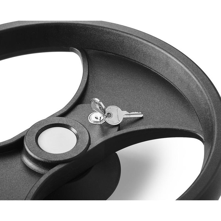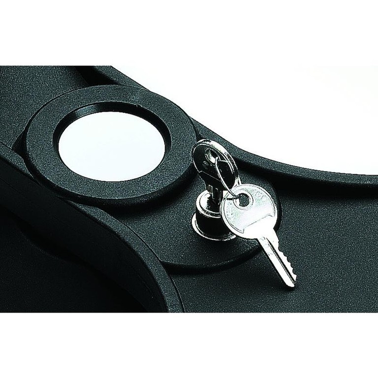 (3) Запирающий замок из никелированной стали. Два пронумерованных ключа в распоряжении. Ключ может быть отключенным в любой из двух позиций. Для закрытия маховика нажмите и поверните ключ на 90°. Ход запирающего замка 10 мм. Полезный выступ штифта от маховика равен 8 мм. Поставляемые ключи закреплены на короне маховика.