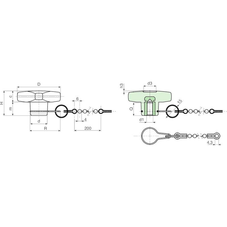 | Код | Арт. | D | H | d | R | c | m | d3 | h3 | d1 6H | Q | Вес (г) |