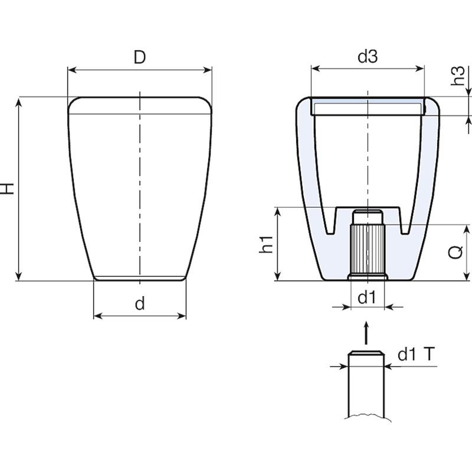 | Код | арт. | D | H | d | h1 | d3 | h3 | d1 T | d1 | Q | Вес (г) |