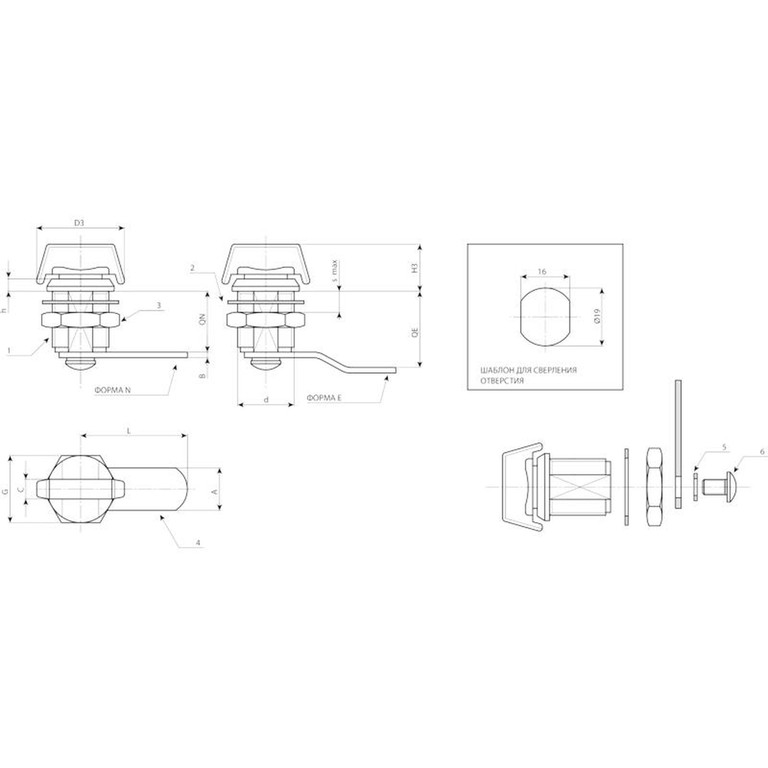 (1) Корпус замка M19 (неподвижная часть), вращающийся сердечник и ручка из литого под давлением сплава Zamak.