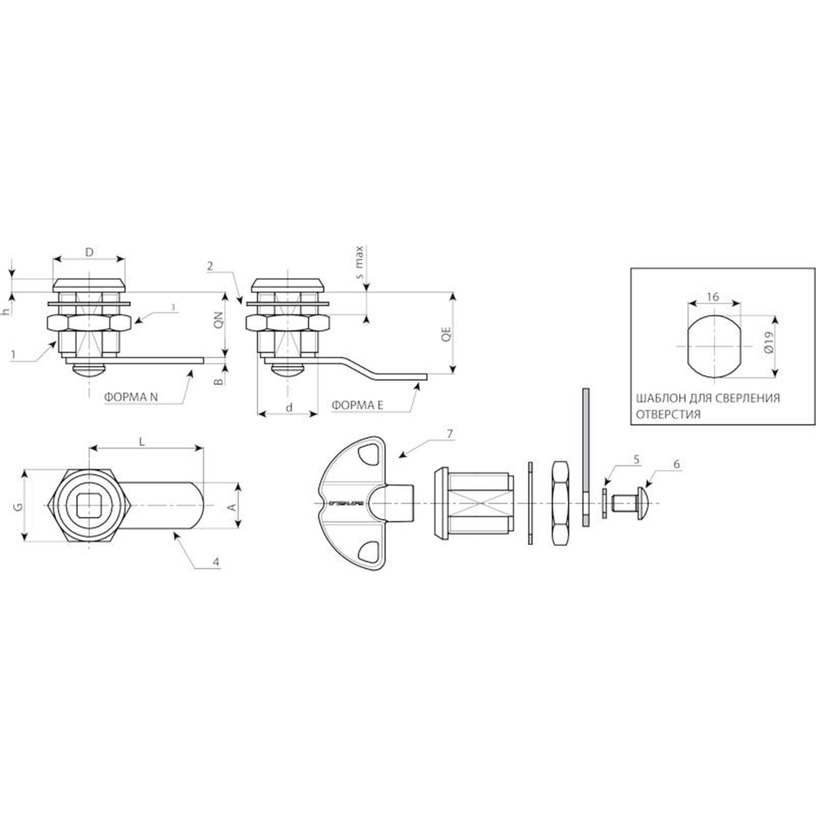 (1) Корпус замка M19 (неподвижная часть), вращающийся сердечник из литого под давлением сплава Zamak. Четырехгранный ключ 7 мм.