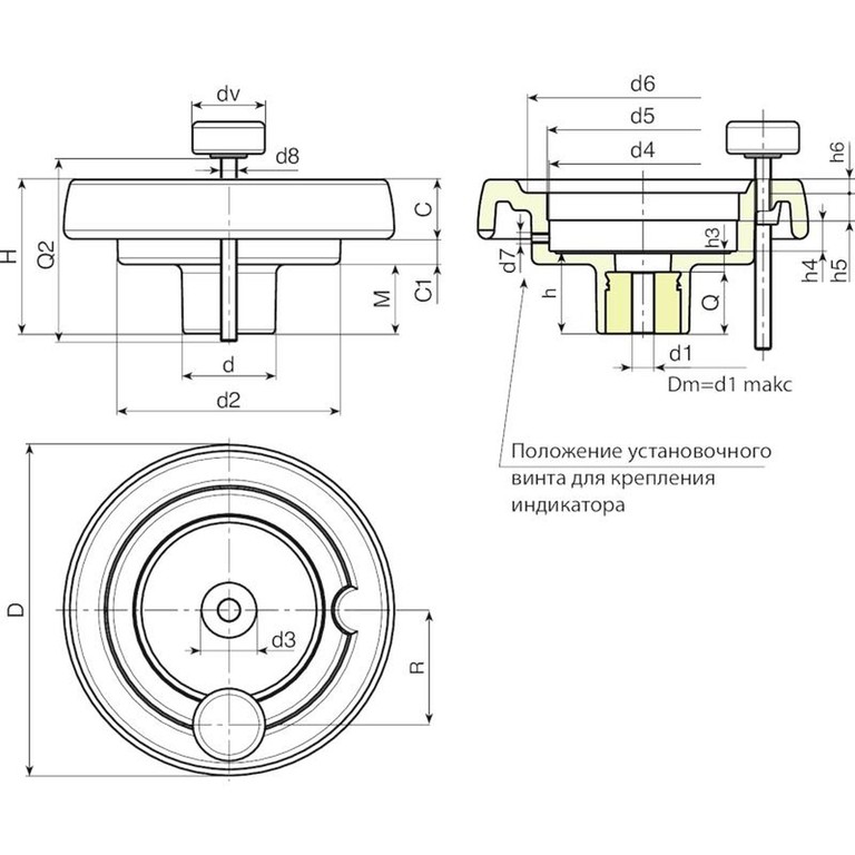 МАХОВИК УПРАВЛЕНИЯ ПОЛНОТЕЛЫЙ С ГНЕЗДОМ ДЛЯ ИНДИКАТОРА И ФИКСИРУЮЩЕЙ РУЧКОЙ