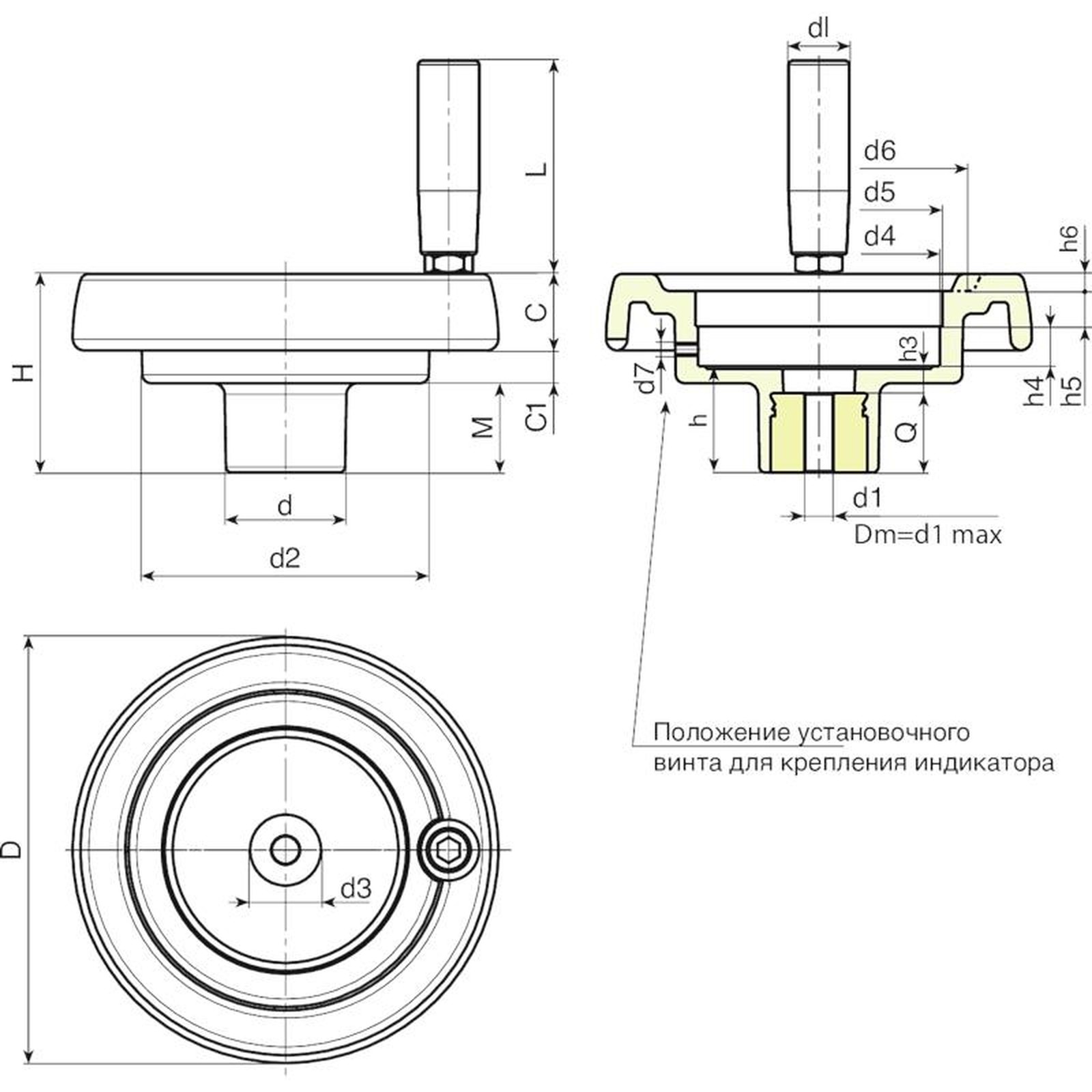 МАХОВИК УПРАВЛЕНИЯ ПОЛНОТЕЛЫЙ С ГНЕЗДОМ ДЛЯ ИНДИКАТОРА И ПОВОРОТНОЙ РУКОЯТКОЙ