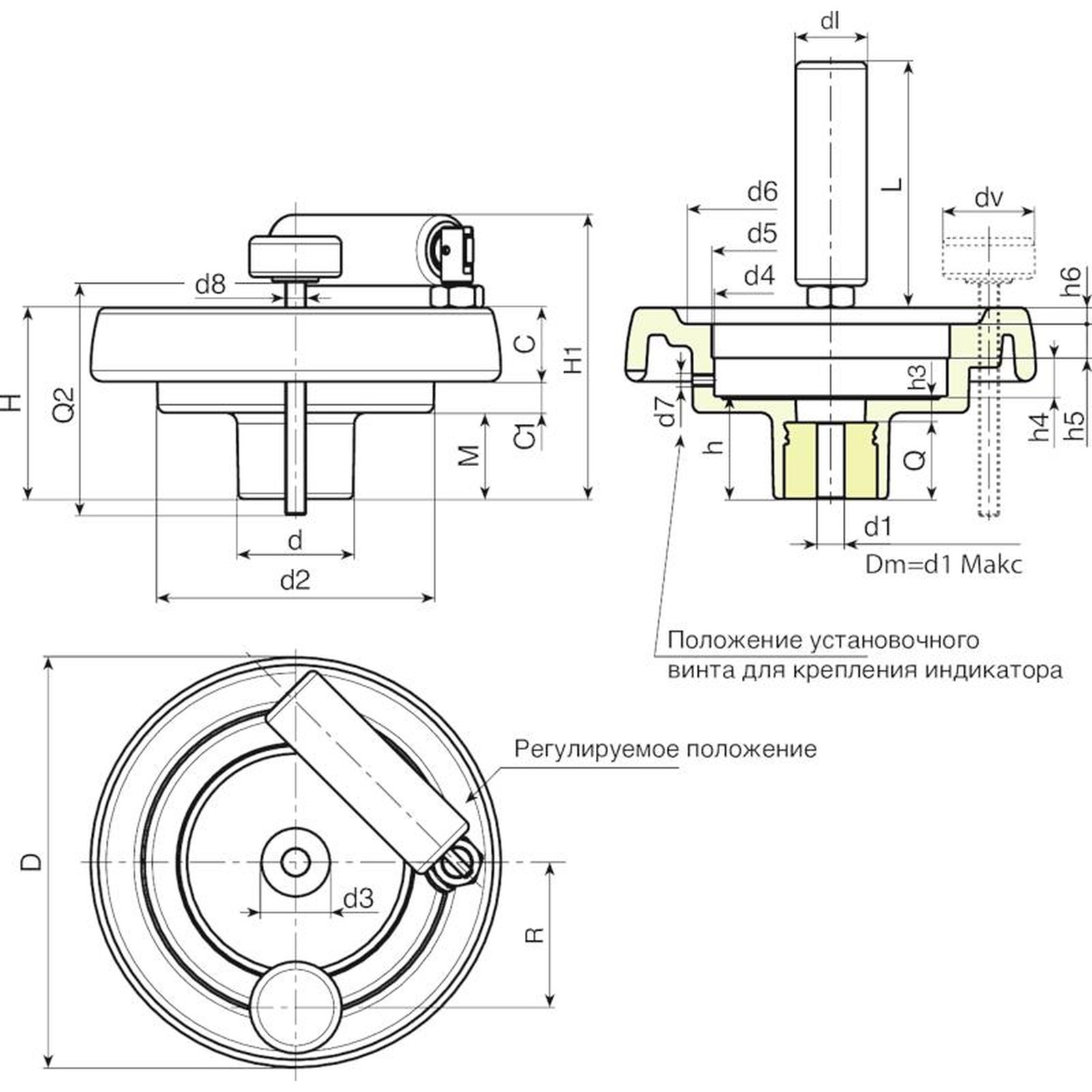 Маховики управления с гнездом для гравитационного индикатора