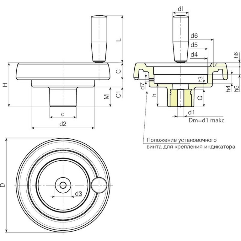МАХОВИК УПРАВЛЕНИЯ ПОЛНОТЕЛЫЙ С ГНЕЗДОМ ДЛЯ ИНДИКАТОРА И ПОВОРОТНОЙ РУКОЯТКОЙ M129