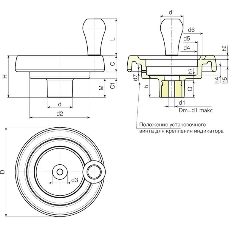 МАХОВИК УПРАВЛЕНИЯ ПОЛНОТЕЛЫЙ С ГНЕЗДОМ ДЛЯ ИНДИКАТОРА И ПОВОРОТНОЙ РУКОЯТКОЙ M202