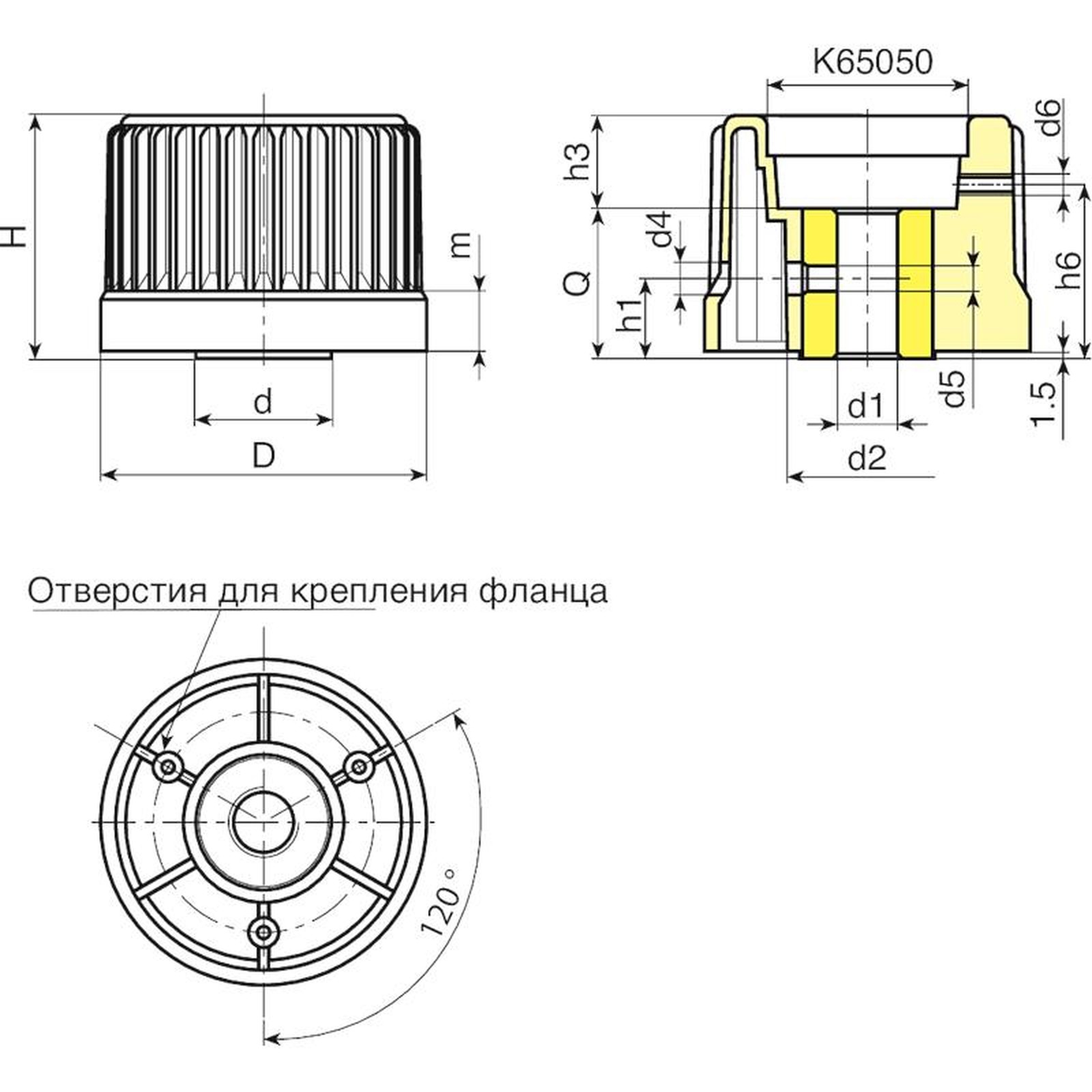 | Код | арт. | D | H | m | d | d2 | d4 | d5 | d6 | h1 | h3 | h6 | Dm | d1 H10 | Q | Вес (г) |