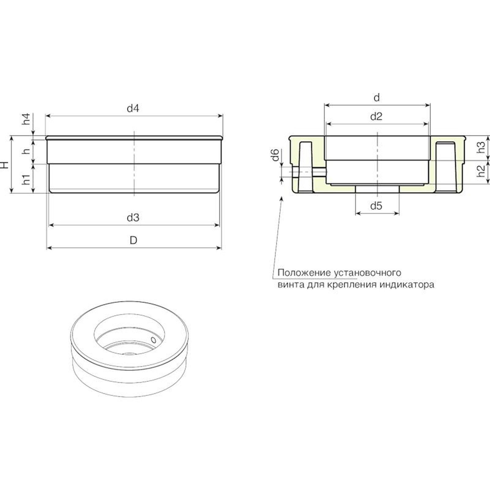 | Код | арт. | D | d | d2 | d3 | d4 | d5 | d6 | H | h | h1 | h2 | h3 | h4 | Вес (г) |