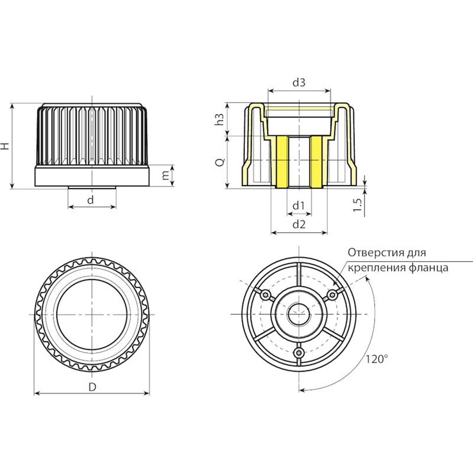 | Код | Арт. | D | H | m | d | d2 | d3 | h3 | d1 6H | Q | Вес (г) |