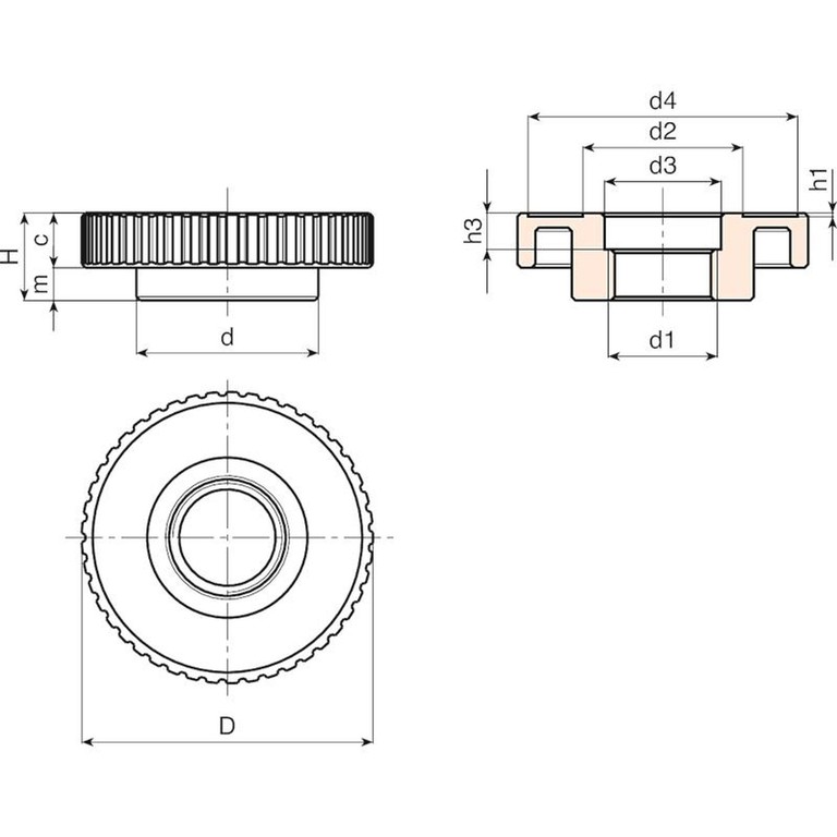 | Код | арт. | D | H | d | c | m | h1 | h3 | d2 | d3 | d4 | d1 | Вес (г) |