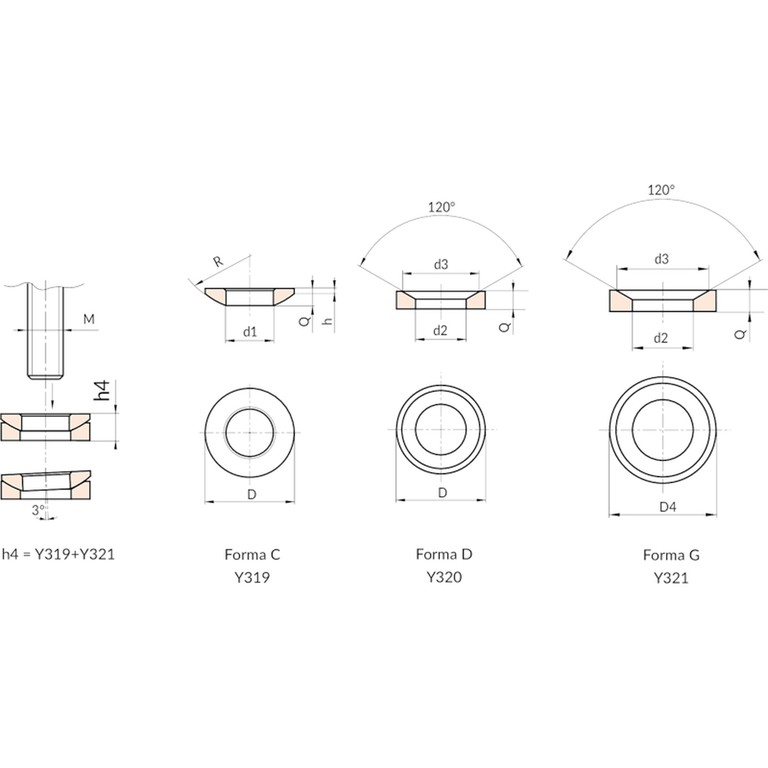Внимание, коническая шайба Y321 используется вместе со сферической шайбой Y319, которая заказывается отдельно.