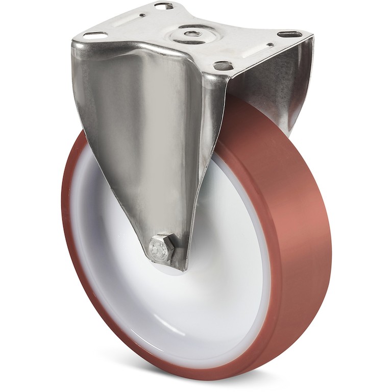 КОЛЕСО ИЗ ПОЛИАМИДА / ПОЛИУРЕТАНА С НЕПОВОРОТНОЙ ВИЛКОЙ ИЗ НЕРЖАВЕЮЩЕЙ СТАЛИ
