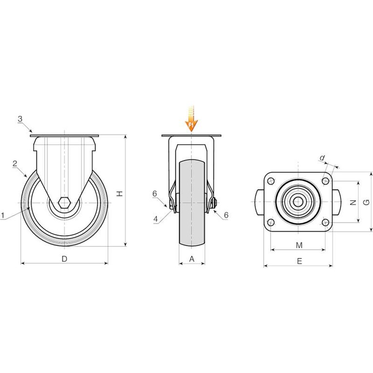 КОЛЕСО ИЗ ПОЛИПРОПИЛЕНА / РЕЗИНОВОЙ ШИНОЙ С НЕПОВОРОТНОЙ ВИЛКОЙ ИЗ СТАЛИ И ФИКСИРУЮЩЕЙ ПЛАСТИНОЙ