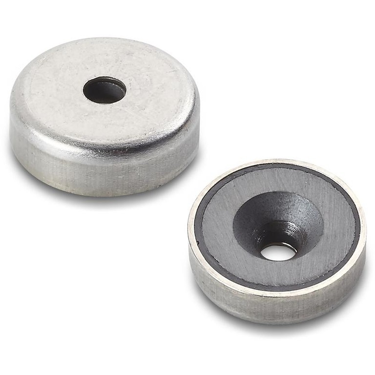 МАГНИТ ФЕРРИТОВЫЙ КРУГЛЫЙ В СТАЛЬНОЙ ОБОЛОЧКЕ С ГЛАДКИМ СКВОЗНЫМ ОТВЕРСТИЕМ