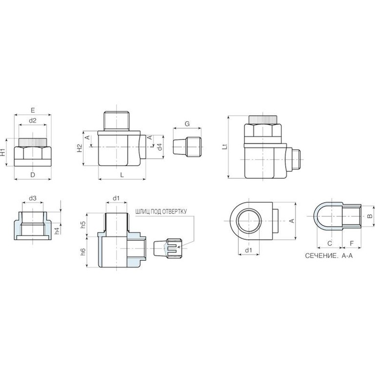 | Код | арт. | B | C | D | E | F | G | L | H1 | H2 | h4 | h5 | h6 | d1 | d2 | d3 | d4 | Lt | Вес (г) |