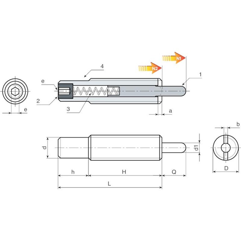 | Код | арт. | L | D | H | h | d | a | b | e | d1 | Q | Вес (г) | N1 (N) | N2 (N) |