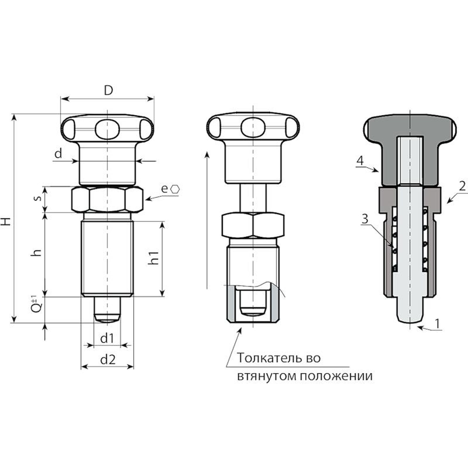 ШТИФТ СТОПОРНЫЙ РЕЗЬБОВОЙ ИЗ ЦЕЛЬНОЙ НЕРЖАВЕЮЩЕЙ СТАЛИ С РУЧКОЙ