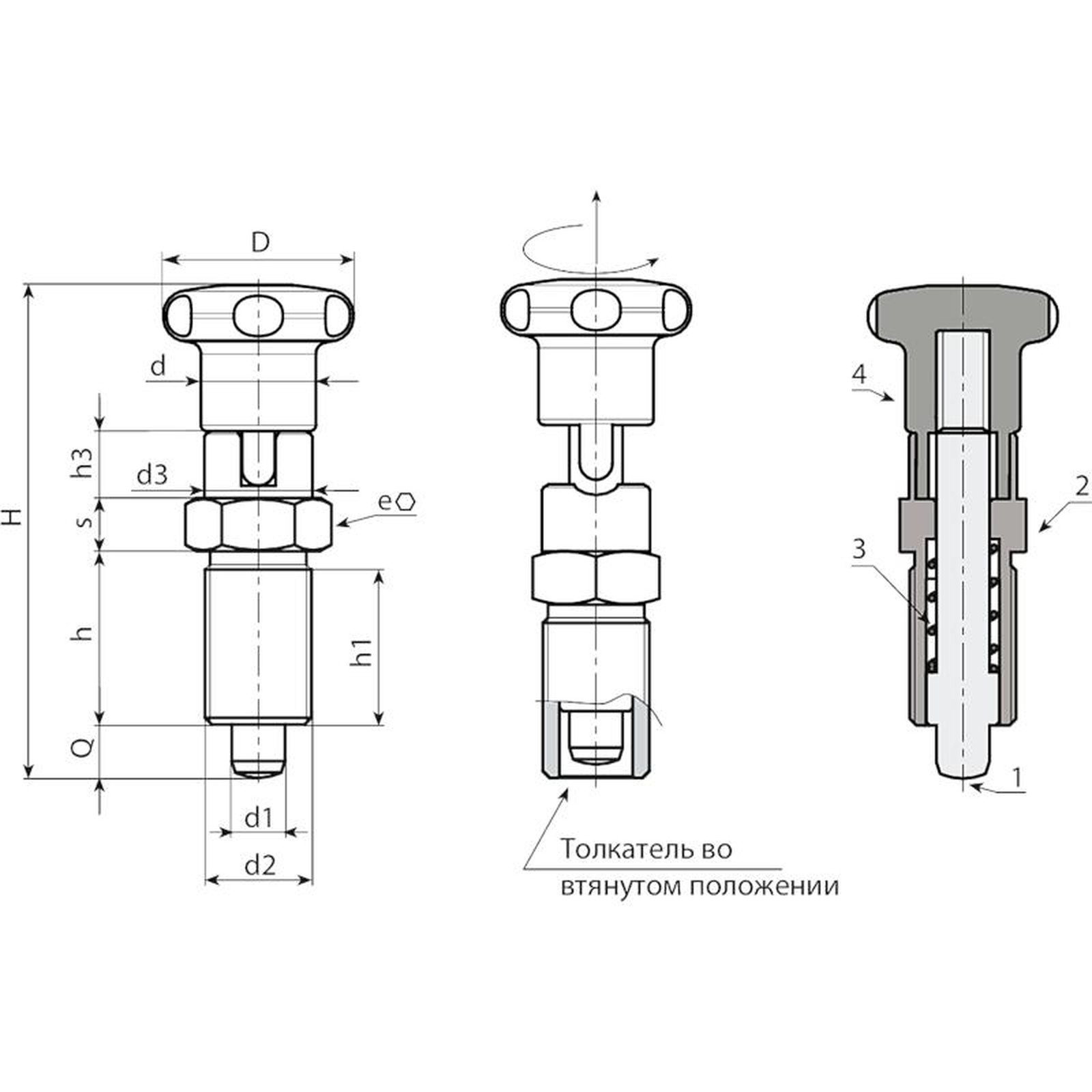 ШТИФТ СТОПОРНЫЙ РЕЗЬБОВОЙ ИЗ ЦЕЛЬНОЙ НЕРЖАВЕЮЩЕЙ СТАЛИ С РУЧКОЙ И ФИКСАТОРОМ