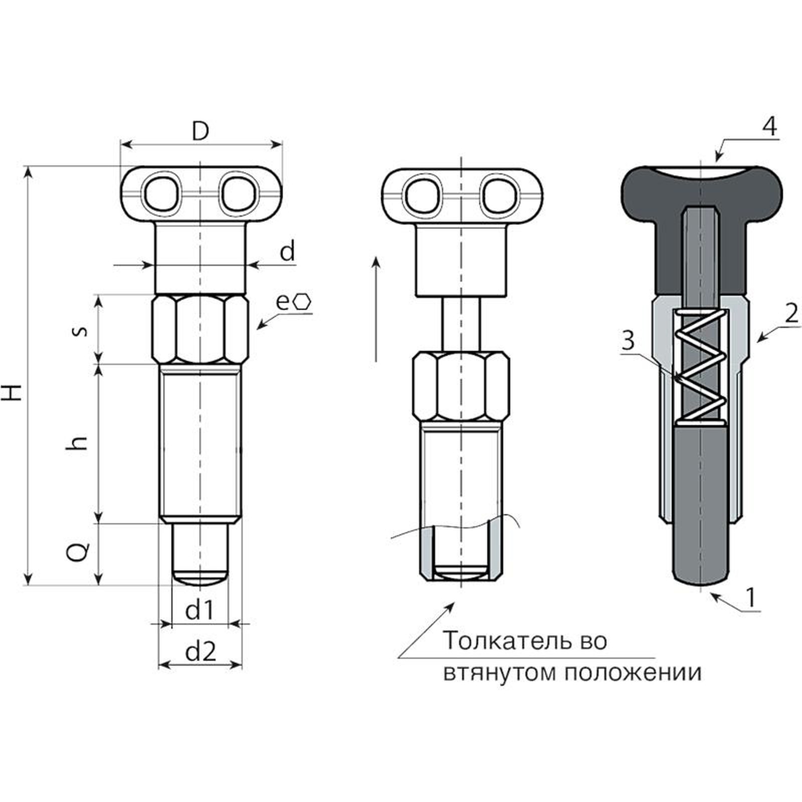 ШТИФТ СТОПОРНЫЙ РЕЗЬБОВОЙ ИЗ ЦЕЛЬНОЙ НЕРЖАВЕЮЩЕЙ СТАЛИ С РУЧКОЙ