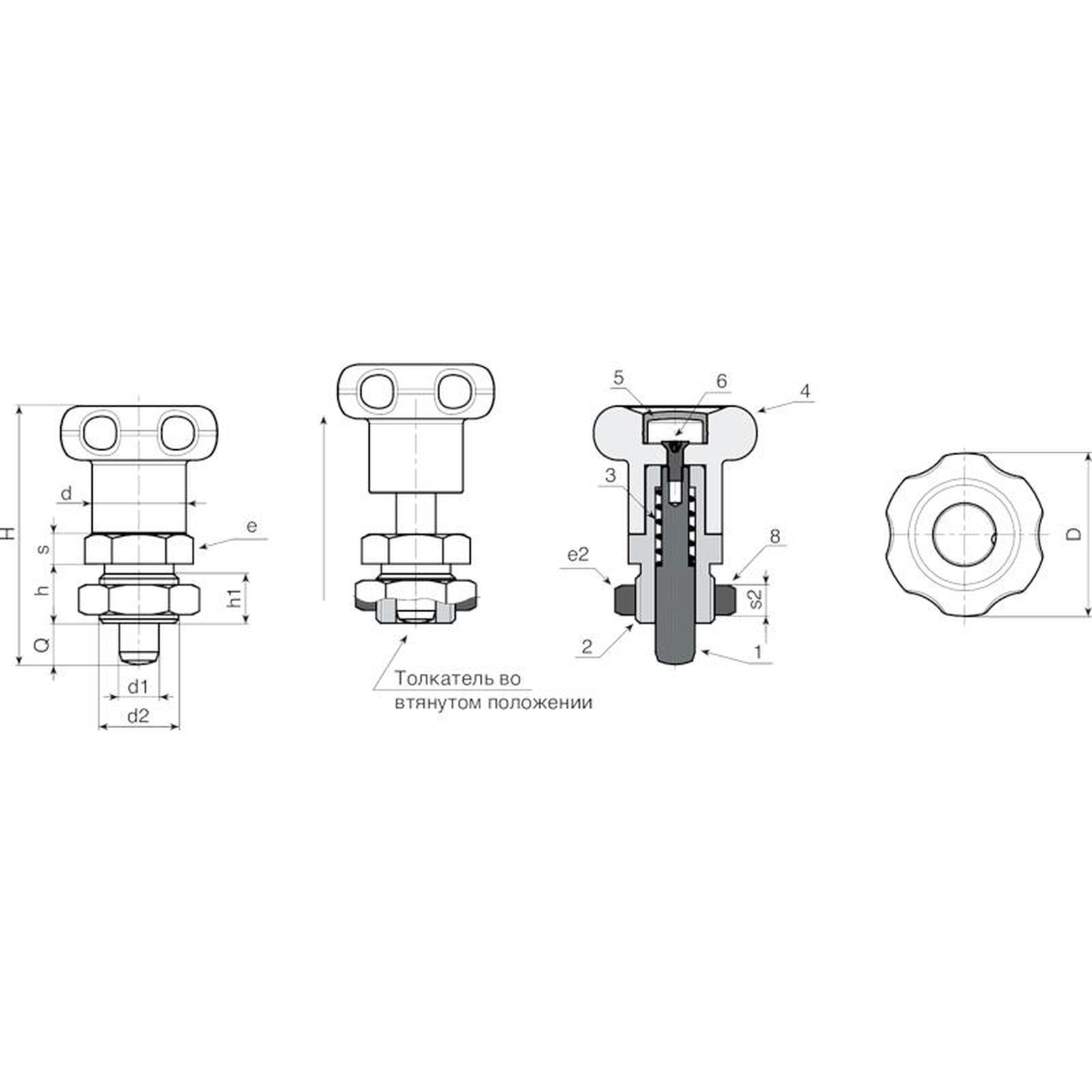 | Код | Арт. | D | H | h | h1 | d2 | d | e | s | e2 | s2 | d1 -0,02 -0,04 | Q | Вес (г) |