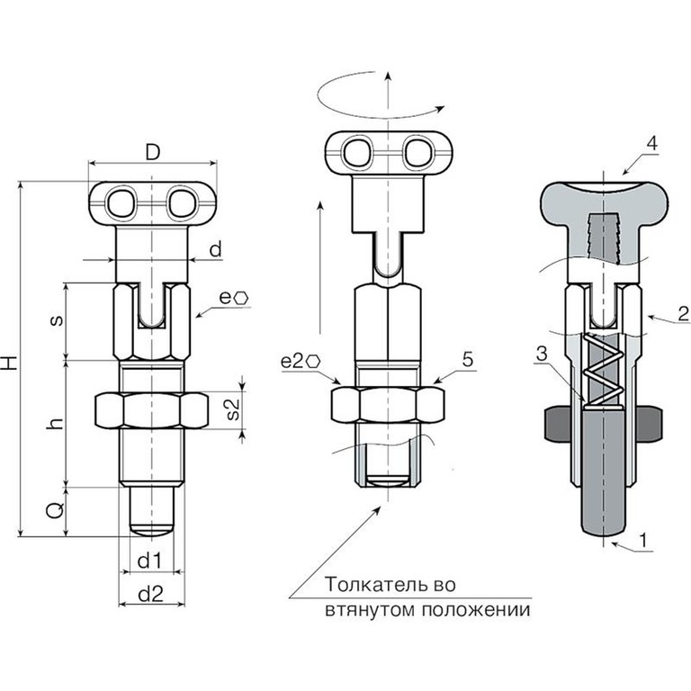(2) Корпус штифта резьбовой, с фиксатором, из автоматной стали.