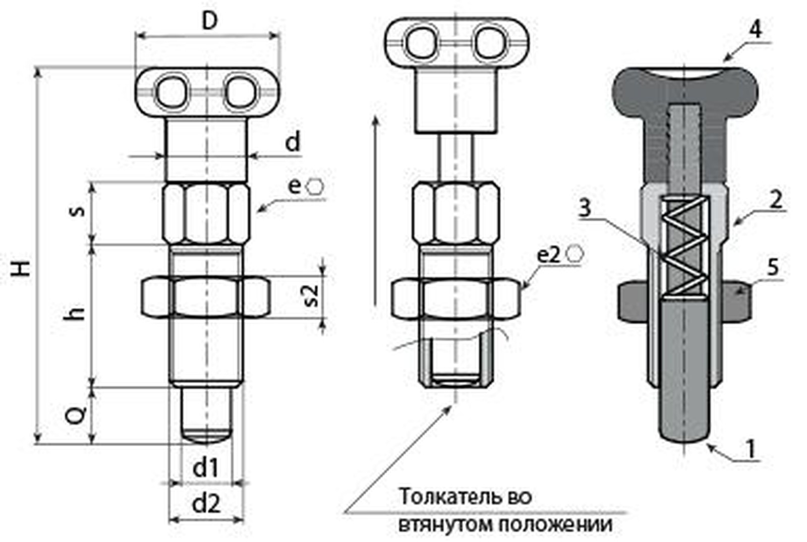 (2) Корпус штифта резьбовой, из автоматной стали.