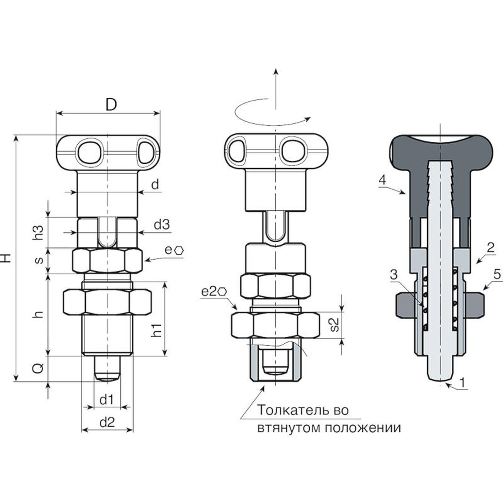 ШТИФТ СТОПОРНЫЙ РЕЗЬБОВОЙ СТАЛЬНОЙ С РУЧКОЙ, ФИКСАТОРОМ И БЛОКИРУЮЩЕЙ ГАЙКОЙ