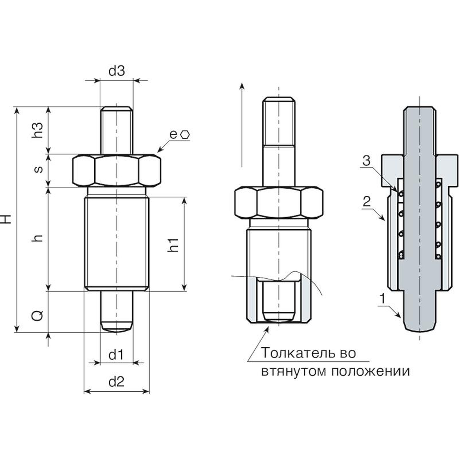 | Код | Арт. | H | h | h1 | d2 | d3 | h3 | e | s | d1 -0,02 -0,04 | Q | Вес (г) |