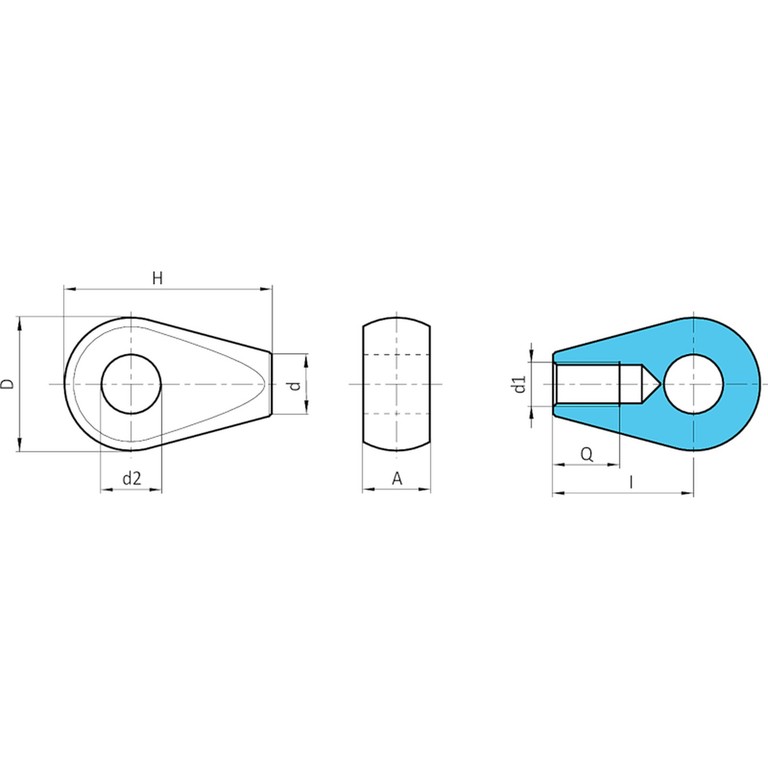 (d1) Глухое резьбовое выточенное отверстие (допуск резьбы 6H).