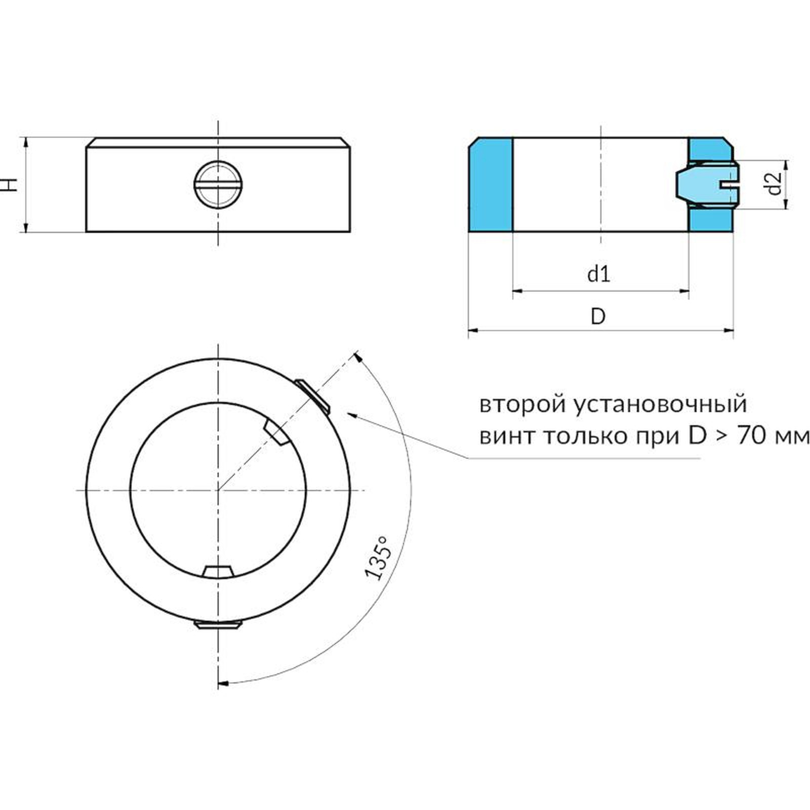 Второй винт добавляется при диаметре, равном или большем D=>70 мм.
