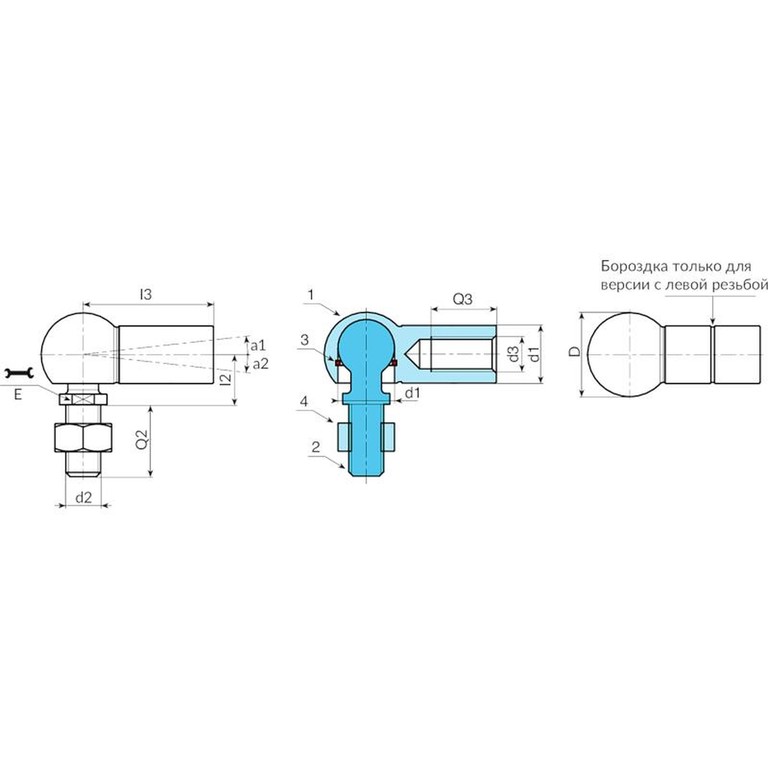Левая резьба (допуск резьбы 6H). Отличается наличием бороздки на шарнире.