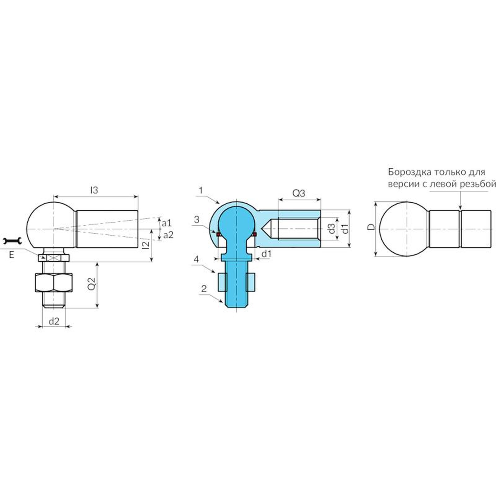 | Код | Арт. | d2 6g | d3 6H | D | E | I2 | I3 | Q2 | d1#r# h9-H9 | Q3 | a1 | a2 | Вес (г) |
